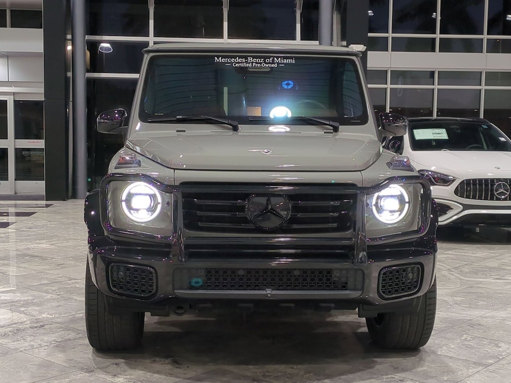 Mercedes-Benz of Miami is pleased to be currently offering this 2025 Mercedes-Benz G-Class G 550 with 11,359mi. This Mercedes-Benz includes: AMG LINE Transmission w/Dual Shift Mode Leather Steering Wheel AMG CARBON FIBER TRIM DASH CAM NIGHT PACKAGE PLUS Running Boards/Side Steps WHEELS: 20" AMG TWIN 5-SPOKE ALLOY W/BLACK ACCENTS Tires - Front Performance Aluminum Wheels Tires - Rear Performance WHEEL LOCKING BOLTS (PIO) *PRICE TO FOLLOW* Wheel Locks MANUFAKTUR INTERIOR PACKAGE Seat-Massage Cooled Front Seat(s) Power Passenger Seat Power Driver Seat Heated Front Seat(s) Bucket Seats *Note - For third party subscriptions or services, please contact the dealer for more information.* With this exceptional SUV, you'll get "sport," "utility," and comfort. Sophistication & understated luxury comes standard on this Mercedes-Benz G-Class G 550. Well-known by many, the G-Class has become a household name in the realm of quality and prestige. When driving an all wheel drive vehicle, such as this Mercedes-Benz G-Class G 550, superior acceleration, traction, and control come standard. Intricately stitched leather and ergonomic design seats are among the details in which test drivers say that Mercedes-Benz G-Class G 550 is in a league of its own Knowledge is power and with the complete records of this pre-owned vehicle, you'll have the power to make a wise purchase.