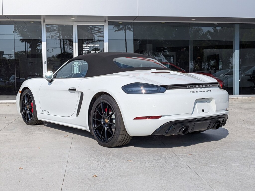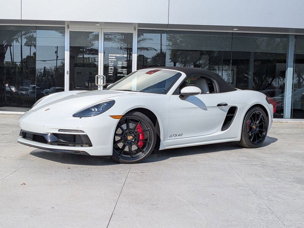 Porsche of Orlando is honored to present a wonderful example of pure vehicle design... this 2024 Porsche 718 Boxster GTS 4.0 only has 4,781mi on it and could potentially be the vehicle of your dreams! This Porsche includes: PREMIUM PACKAGE Keyless Start Hands-Free Liftgate Power Door Locks Keyless Entry Blind Spot Monitor Remote Trunk Release 14-WAY POWER SPORT SEATS Mirror Memory Seat Memory Power Passenger Seat Adjustable Steering Wheel Power Driver Seat Passenger Adjustable Lumbar Driver Adjustable Lumbar Bucket Seats BLACK TOP SMARTPHONE COMPARTMENT PORSCHE CREST ON HEADRESTS SPORTDESIGN PACKAGE IN HIGH GLOSS BLACK REAR WING IN HIGH GLOSS BLACK Rear Spoiler DOOR HANDLES IN HIGH GLOSS BLACK NAVIGATION W/PORSCHE CONNECT Smart Device Integration Navigation System BLACK/CHALK, LEATHER SEAT TRIM W/TWO-TONE LEATHER INTERIOR Leather Seats MODEL DESIGNATION ON REAR IN HIGH GLOSS BLACK PORSCHE ACTIVE SUSPENSION MANAGEMENT (PASM) Active Suspension WHITE BOSE SURROUND SOUND SYSTEM Premium Sound System EXCLUSIVE DESIGN FUEL CAP SPORT CHRONO STOPWATCH DIAL IN WHITE TRANSMISSION: 7-SPEED PORSCHE DOPPELKUPPLUNG (PDK) Transmission w/Dual Shift Mode 7-Speed A/T A/T *Note - For third party subscriptions or services, please contact the dealer for more information.* This is a well kept ONE-OWNER Porsche 718 Boxster GTS 4.0 with a full CARFAX history report. This is a Certified Porsche 718 Boxster, which means it has been thoroughly inspected against a set of stringent standards. Only vehicles that pass this inspection can be sold as Certified. It's like taking a beach vacation each time you slip behind the wheel of this seductive, sporty convertible. This Porsche 718 Boxster GTS 4.0's level of quality is not meant for just anyone. It's meant for the person who strives for a classy, comfortable, and luxurious car. Added comfort with contemporary style is the leather interior to heighten the quality and craftsmanship for the Porsche 718 Boxster GTS 4.0. Find the quickest driving route in this Porsche 718 Boxster GTS 4.0 using the installed navigation system. This nav system is one of the easiest to use and will help get you where you need to go quickly! With complete records on this pre-owned vehicle, you'll have peace of mind and the satisfaction in knowing your new purchase is safe and reliable. Adjectives like impeccable, spotless, and immaculate can be used to describe how clean this Porsche 718 Boxster GTS 4.0 is, causing it to feel more like a new vehicle than a pre-owned one. This Porsche 718 Boxster is well-equipped, well-cared for and still covered under the manufacture's factory warranty. Fast and exciting, this Porsche 718 Boxster GTS 4.0 is a true testament to the pursuit of automotive distinction by Porsche. Once you're behind the wheel of this incredible machine, you will not think twice about purchasing this vehicle. Equipped with many extra features, this well-appointed vehicle is a treat to drive.
